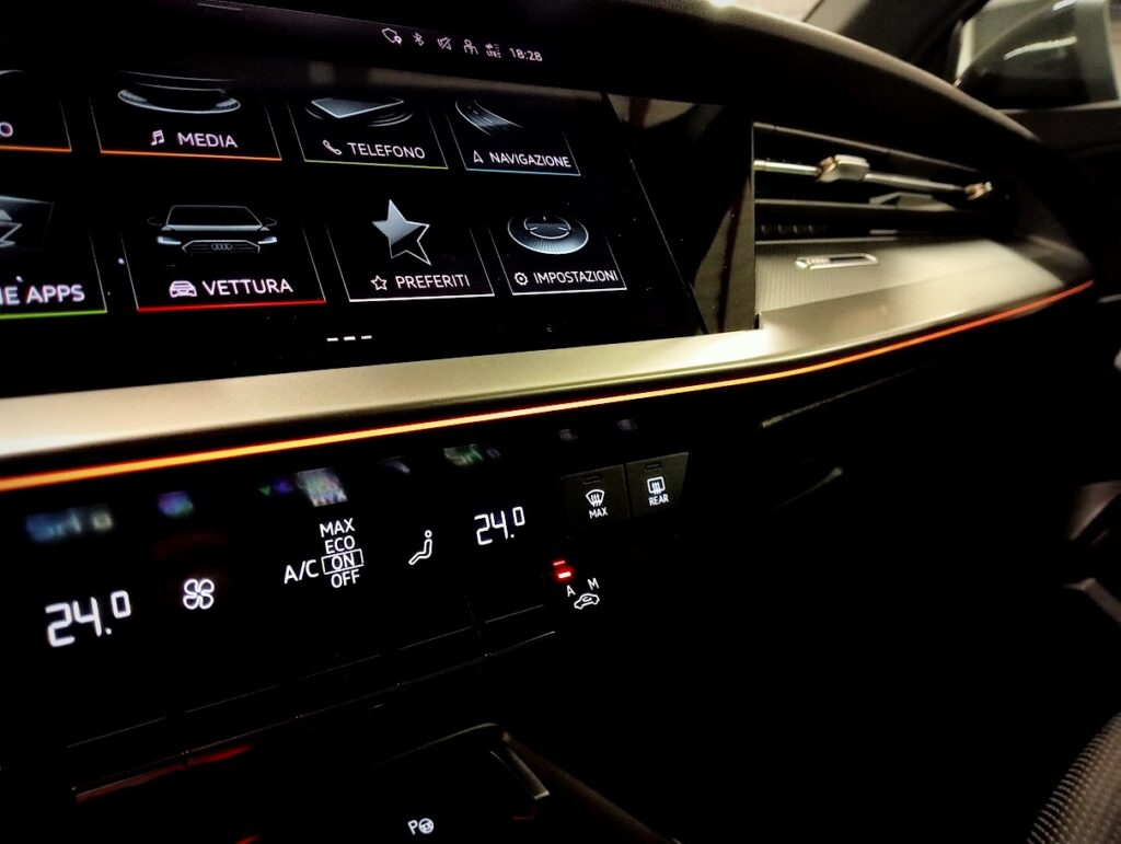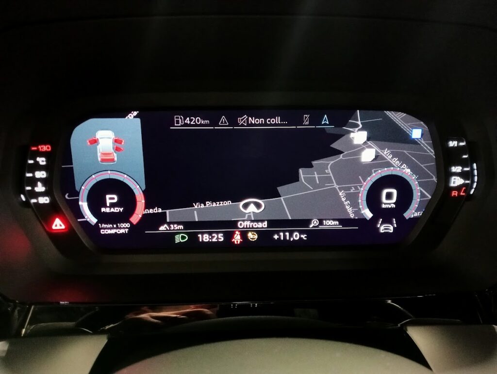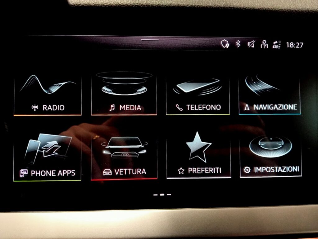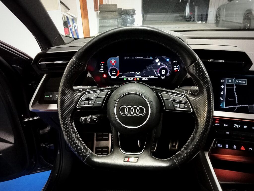 ALLESTIMENTO: ABS, ESP CONTROLLO TRAZIONE, AIRBAGS, CHIUSURE CENTR. A DISTANZA, VETRI ELETTRICI , SPECCHIETTI REGOLABILI + RICHIUDIBILI + RISCALDABILI ., CLIMATIZZATORE AUTOMATICO CON AREAZIONE POSTERIORE, SISTEMA MULTIMEDIALE BLUETOOTH NAVIGAZIONE APPCONNECT VEICOLARE TOUCH SCREEN, VIRTUAL COCKPIT, VOLANTE SPORTIVO SAGOMATO SLINE IN PELLE + PADDLE F1, TEMPOMAT ADATTIVO , SEDILI ANTERIORI SLINE SPORTIVI, SEDILI POSTERIORI SDOPPIABILI E ABBATTIBILI, COMING HOME, SENSORE LUCI, HIFI SISTEM, VETRI ATERMICI E OSCURATI, PDC SENSORI DI PARCHEGGIO ANTERIORI E POSTERIORI + PARK ASSIST, CERCHI IN LEGA R19 AUDI SPORTO CON ASSETTO SPORTIVO, FARI LED CON FRECCE DINAMICHE, BLACK PACK (CALANDRA ANTERIORE + CALOTTE SPECCHI + TERMINALI SCARICO + INSERTI ESTERNI IN NERO LUCIDO)