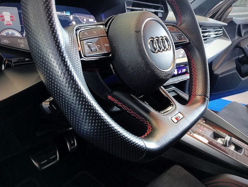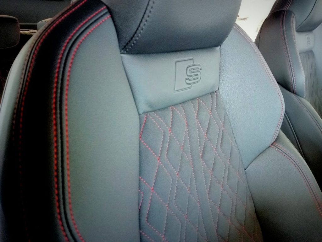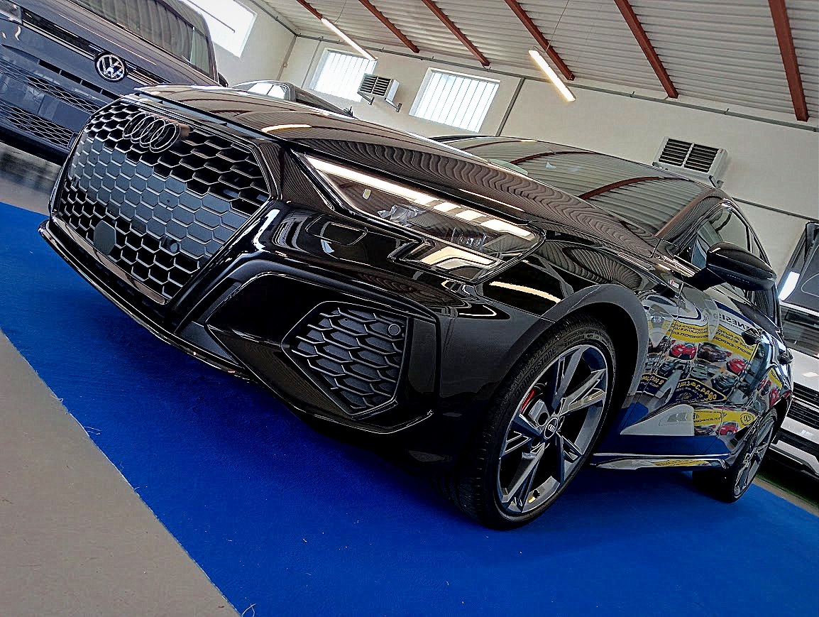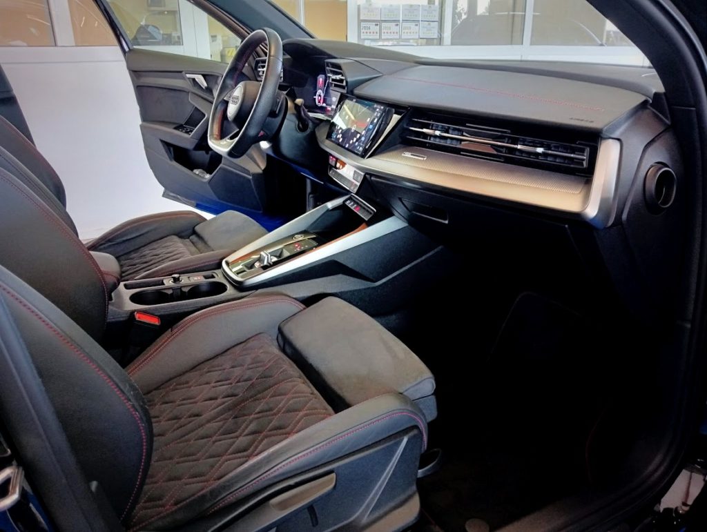 VERSIONE AUDI A3 SPORTBACK 2.0 TDI 150cv SLINE + PACK BLACK , VERNICE NERO MET, INTERNI COMBINATO PELLE/ALCANTARA NERO CON CUCITURE ROSSE IN AMBIENTE NERO, CAMBIO AUTOMATICO, EURO6