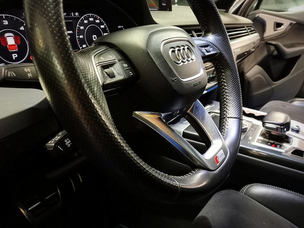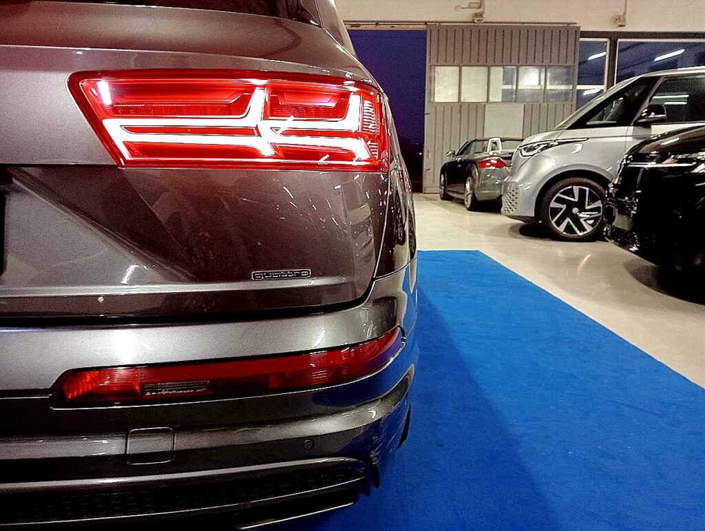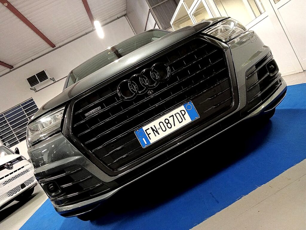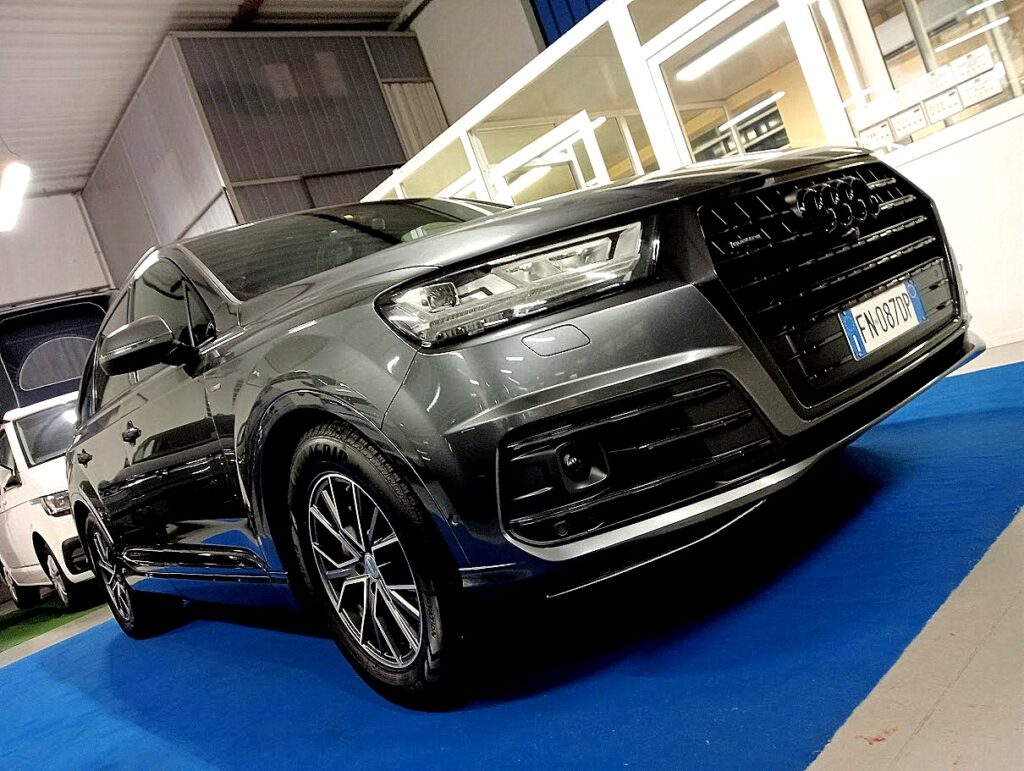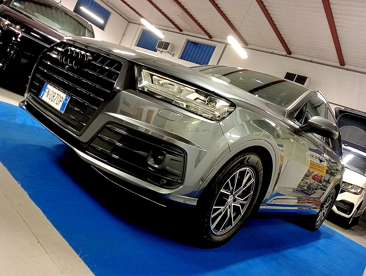 VERSIONE AUDI Q7 3.0 TDI SLINEPLUS QUTTRO TIPTRONIC , VERNICE GRIGIO DAYTONA MET, INTERNI SLINE PELLE/ALCANTARA SLINE NERO IN AMBIENTE NERO, CAMBIO AUTOMATICO, EURO6B, 7POSTI