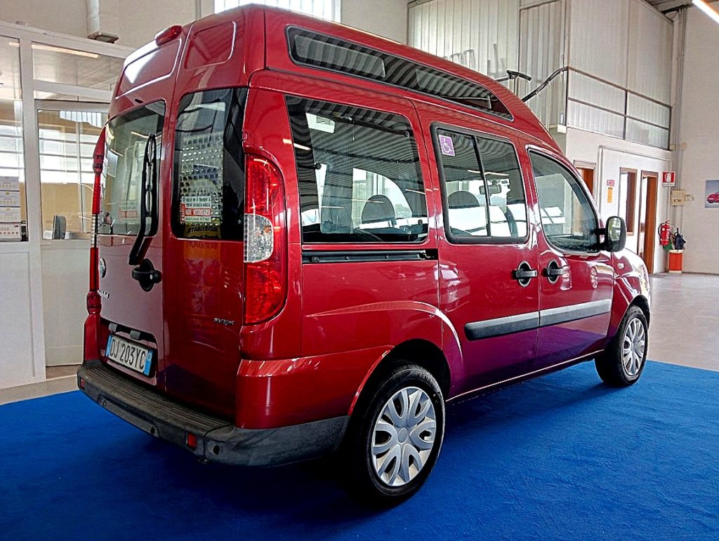 VERSIONE FIAT DOBLO 1.3 MJET TETTO ALTO CON RAMPA ACCESSO CARROZZINA, VERNICE ROSSO BORDEAUX MET, INTERNI STOFFA NERO IN AMBIENTE NERO, CAMBIO MANUALE, AUTOVETTURA 5 POSTI