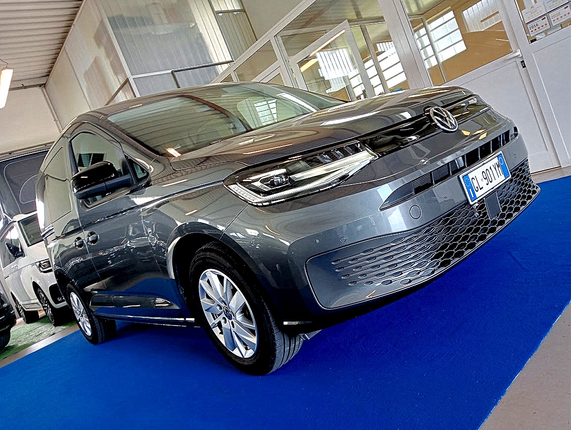 VERSIONE VW CADDY 1.5 TSI 114cv DSG SPACE, VERNICE GRIGIO INDIO MET, INTERNI STOFFA ANTRACITE IN AMBIENTE NERO, CAMBIO AUTOMATICO DSG, EURO6D ISC FCM, AUTOVETTURA 5 POSTI