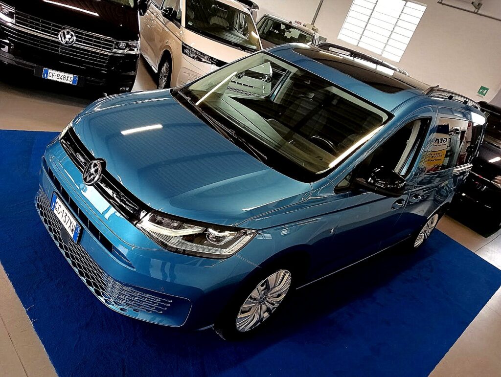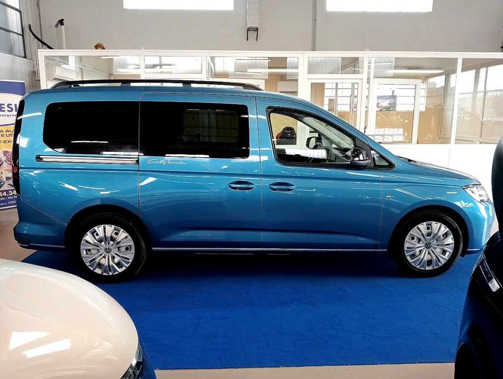 VERSIONE VOLKSWAGEN CADDY CALIFORNIA 2.0 TDI 122cv DSG , VERNICE BLU COSTA AZUL MET, INTERNI STOFFA NERO IN AMBIENTE NERO, CAMBIO AUTOMATICO DSG, EURO6D TEMP, OMOLOGATO AUTOVETTURA, AGEVOLABILE LEGGE 104 AL 4%