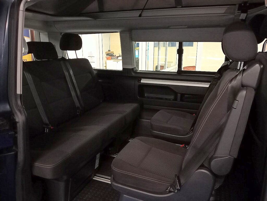 VERSIONE VOLKSWAGEN T6 CALIFORNIA 2.0 TDI 150cv , VERNICE BLU STARLIGHT MET, INTERNI STOFFA NERO IN AMBIENTE NERO, CAMBIO MANUALE 6 RAPPORTI, EURO6, 7POSTI